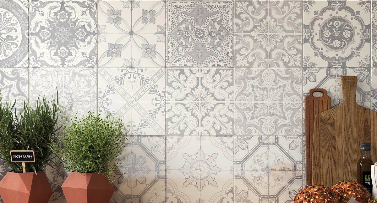 Mediterranean style patterned tile 200 x 200 in 38 designs colours. Wear Grade 4