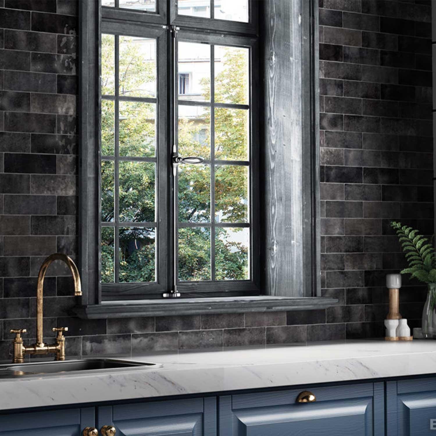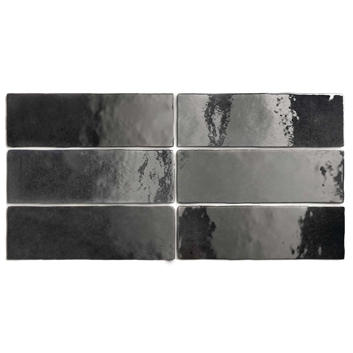 Rectangular shaped rustic porcelain tile in 200 x 65 x 8mm with shimmering glaze in a range of colours.