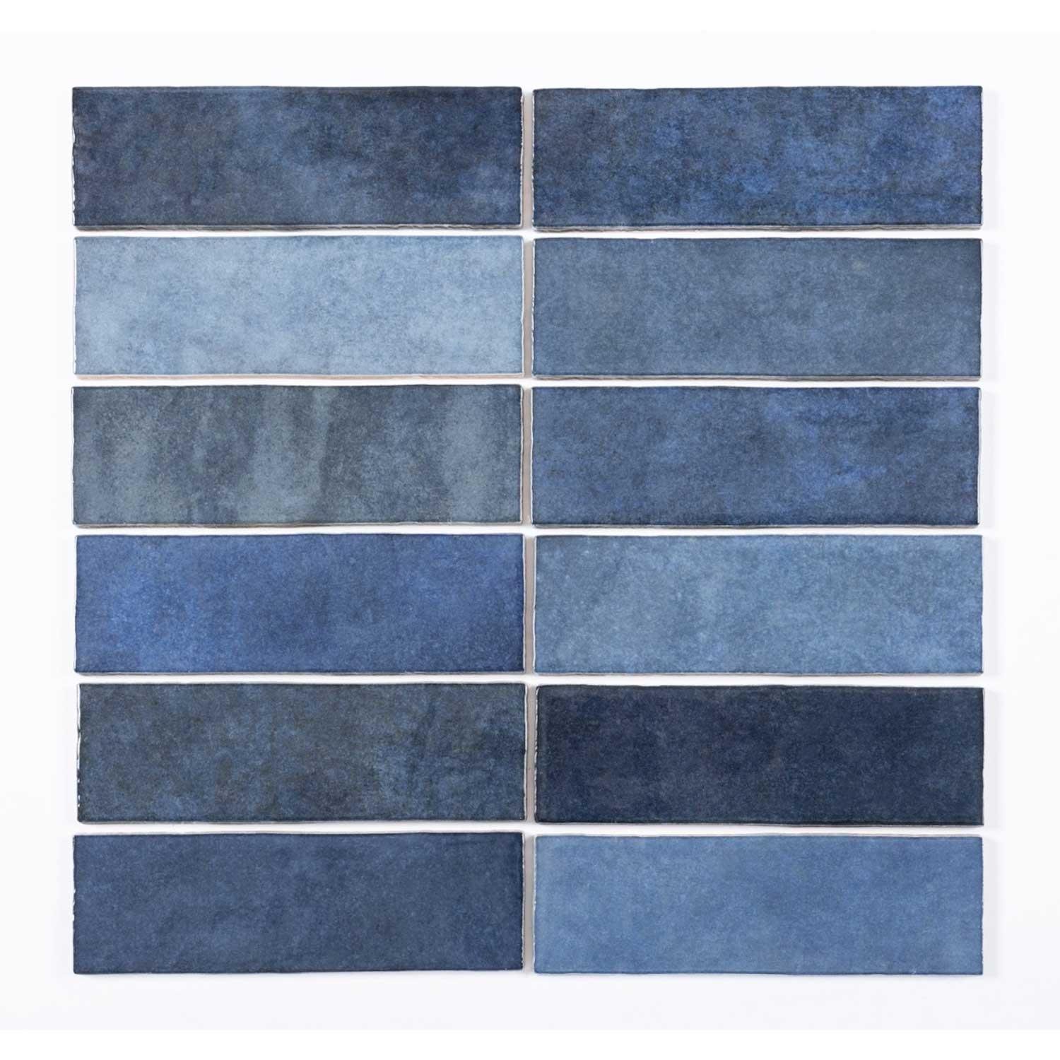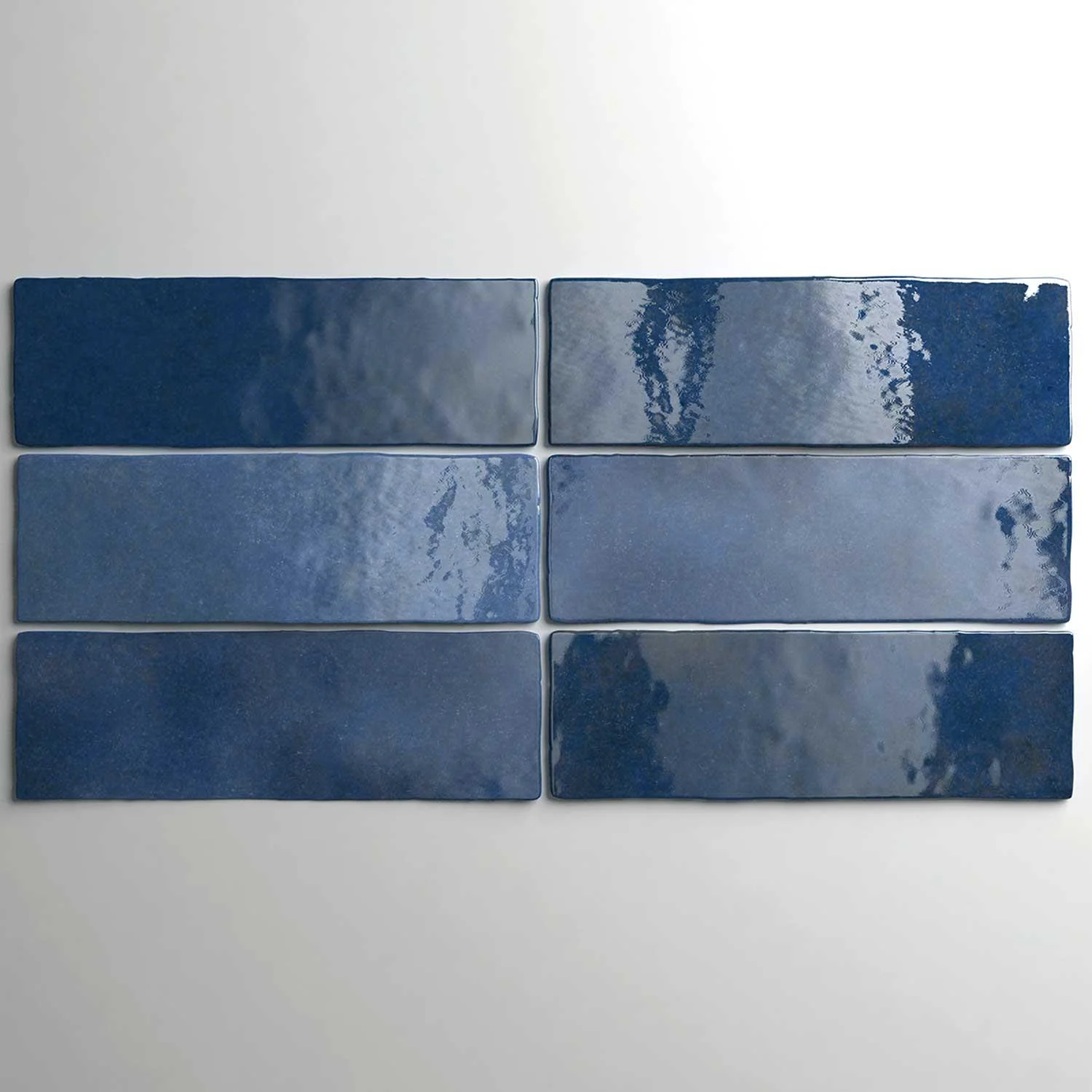 Rectangular shaped rustic porcelain tile in 200 x 65 x 8mm with shimmering glaze in a range of colours.