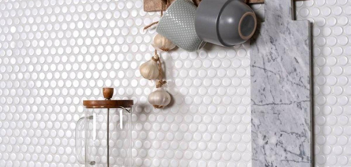 Durable mosaics in circles, squares, herringbone and hexagonal shapes. In Black and white, matt or gloss finish in various sizes.