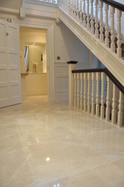 Marble tiles are much easier to maintain than many would have you believe. It is advisable not to use traditional bathroom cleaners and scourers, but instead a mild ph soap. There are specialist soaps available such as Easy Care but many supermarkets now supply a Marseilles type soap for use on natural materials such as limestone, marble and wood.