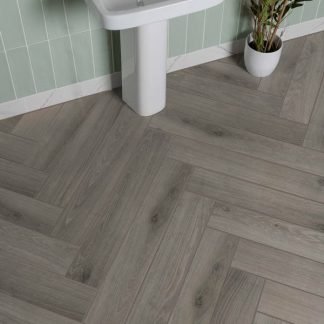 Wood effect porcelain tile in 4 colourways. Smart shorter plank 598 x 185 x 8mm can be used in large herringbone style. 6 face variations